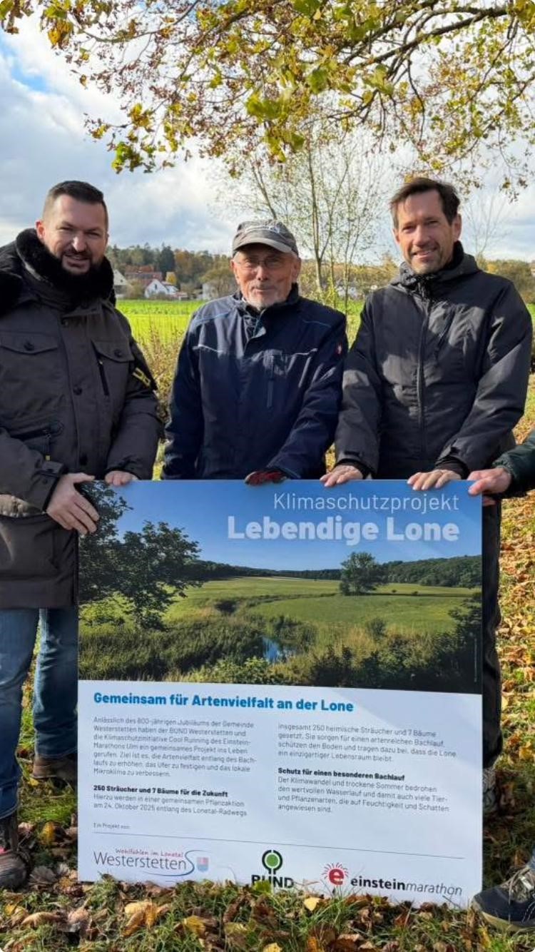 Ziel der Maßnahme ist es, den Wasserlauf der Lone zu schützen: Die neuen Gehölze sollen künftig Schatten spenden, das Ufer stabilisieren und das Mikroklima verbessern – damit der Bach auch in zunehmend trockenen Sommern widerstandsfähiger bleibt.