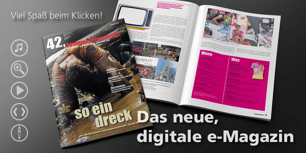 Wir haben das erste eMagazin mit interessanten Geschichten rund um das Thema Laufen gefüllt und zahlreiche digitale Möglichkeiten ‚eingebaut‘ – du kannst z.B. Reinhören und Scrollen und beim Durchblättern fallen dir bestimmt viele Weitere ‚Klick-Möglichkeiten‘ auf.